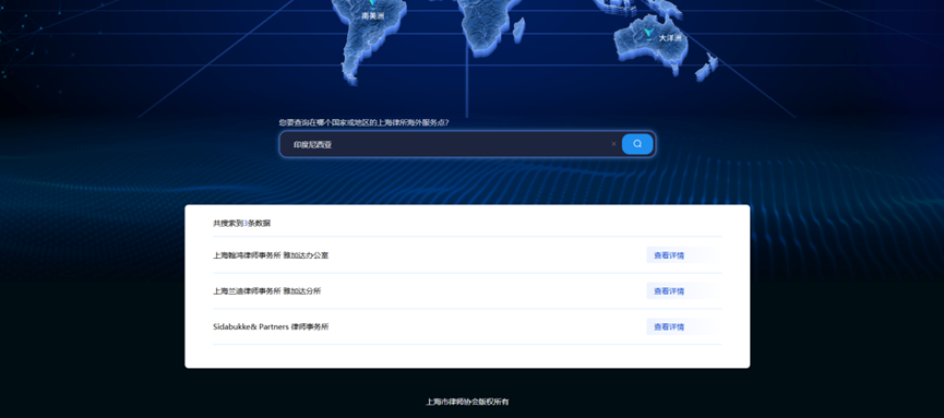 3.检索“印度尼西亚”,即可查看“上海翰鸿律师事务所 雅加达办公室”的详情信息;
